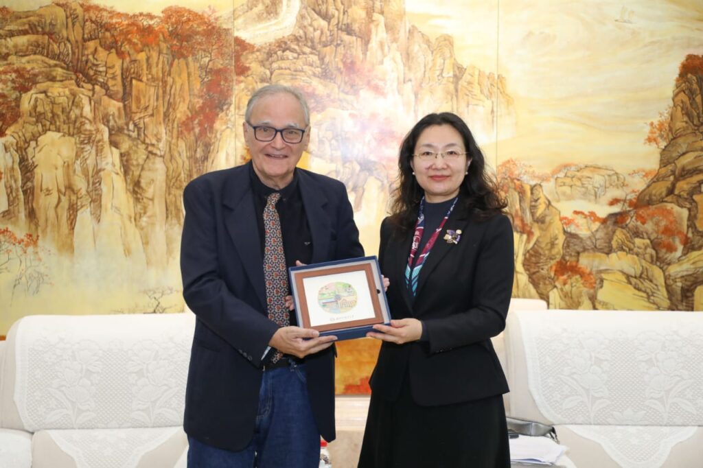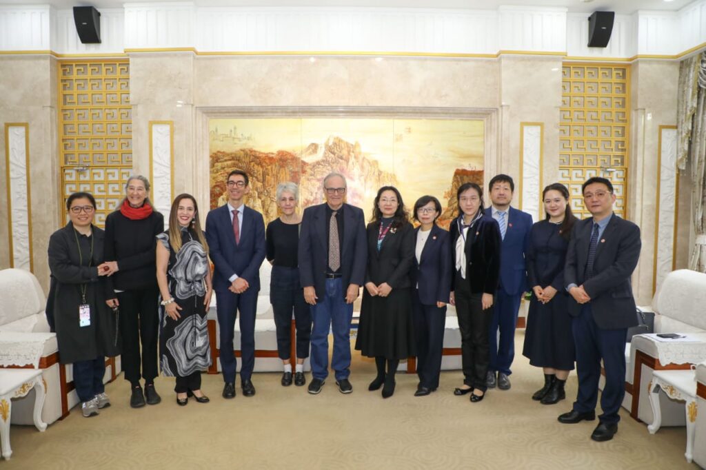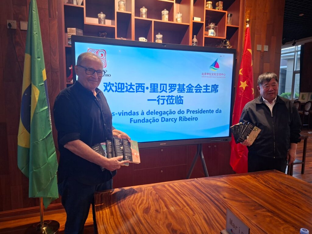 Visita ao Centro de Intercâmbio Cultural China- América Latina e doação da coleção da Biblioteca Básica Latino-Americana, editada pela Fundação Darcy Ribeiro. Na foto José Roanldo, presidente da Fundar, e Wang Lichao, fundador e responsável pelo Centro.