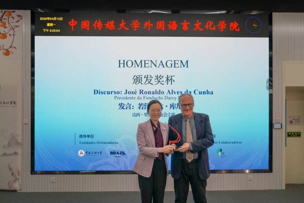 Com a presença de alunos e professores da Faculdade de Estudos Internacionais da Universidade de Comunicação da China, em um belíssimo campus com jardins floridos na primavera chinesa, José Ronaldo fez a doação de 50 volumes da Biblioteca Básica Brasileira, editada pela Fundar, para a Biblioteca da Faculdade de Estudos Internacionais. Houve troca de presentes, e José Ronaldo entregou um prêmio da Fundar a Yang Qiarong, tradutora do livro de Darcy Ribeiro e diretora do Centro de Estudos em Comunicação China-Brasil.