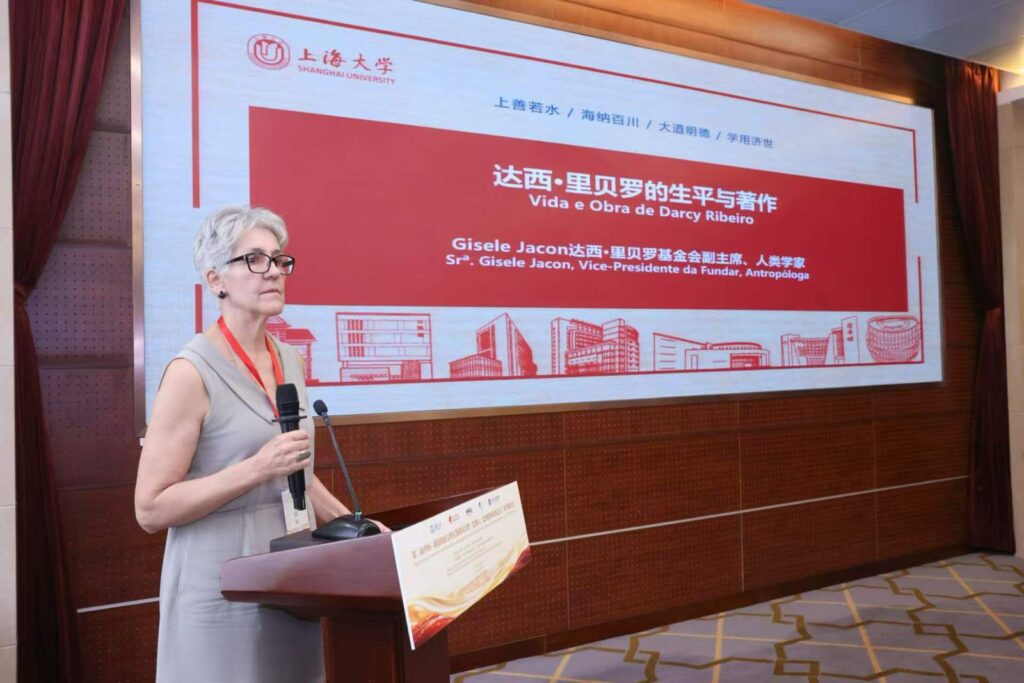 Além da doação de exemplares da edição chinesa do livro O Povo Brasileiro, foi apresentado o vídeo promocional pelo representante da Fundar. As palestras, mediadas pela Prof.ª Tang Qingye, foram proferidas pela antropóloga Gisele Jacon Moreira, vice-presidente da Fundar, com o texto “O Povo Brasileiro: do caldeirão de etnias ao diálogo de civilizações — O Pensamento de Darcy Ribeiro e o Aprendizado Mútuo entre as Civilizações Chinesa e Brasileira”. Yan Qiaorong, Diretora do Centro de Estudo em Comunicação China-Brasil e professora associada da Faculdade de Estudos Internacionais da Universidade de Comunicação da China apresentou “Encontros na Mediação Cultural: a Tradução do livro O Povo Brasileiro e os Estudos Regionais e de País”. “Os Primórdios da Sinologia Europeia: as Narrativas Portuguesas sobre a China no Século XVI” foi o tema da palestra de Zhang Minfen, professora titular da Escola de Estudos Europeus e do Centro de Estudos Brasileiros da Universidade de Estudos Internacionais de Xangai. Fianlizando, Jiang Shixue, Professor Convidado Especial e Diretor do Centro de Estudos Latino-Americanos, SHU, abordou o tema “Como Aprofundar mais o Diálogo Civilizacional entre a China e o Brasil”.