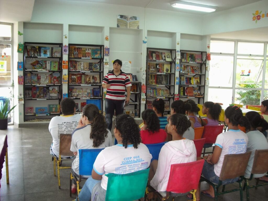 Os alunos do CIEP não eram obrigados a frequentar a biblioteca, nem tal frequência estava prevista no horário de cada turma. Entretanto, fazia parte integrante do projeto pedagógico da escola. Os profissionais da biblioteca – 1 bibliotecária e 2 auxiliares – e os professores se dedicavam a torná-la atraente e convidativa para que os alunos a frequentassem e buscassem seus livros preferidos por vontade própria. Junto com animadores culturais, promoviam contação de histórias, gincanas etc. A biblioteca contava com acervo integrado aos componentes curriculares, livros de referência, revistas, jornais, revistas de quadrinhos e livros infanto-juvenis.